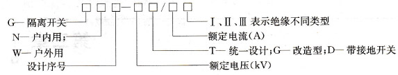 二、隔離開(kāi)關(guān)的型號(hào)及含義標(biāo)示如下: