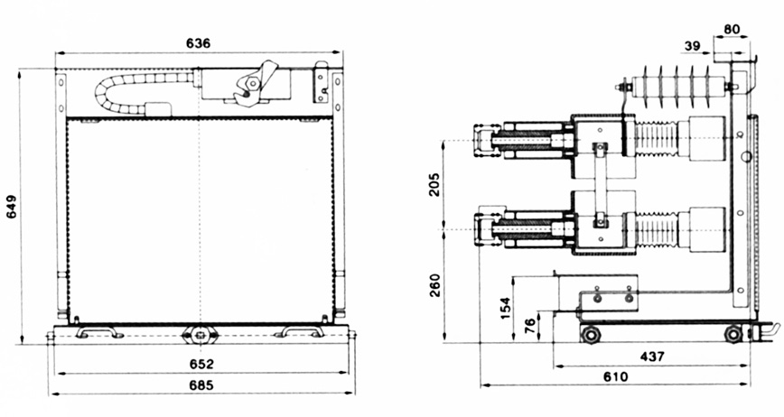 此車型適用于配置JDZ(X)10-10C型電壓互感器,安裝尺寸圖參照大連第一互感器廠,如配置其他型號(hào)電壓互感器,訂貨時(shí)需另外注明。熔斷器按XRNP-10型或RN2-10型配置。