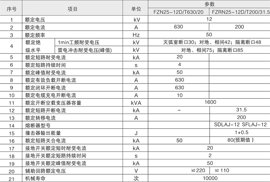 FZN25-12/FZ(R)25-12D/T型戶(hù)內(nèi)高壓真空負(fù)荷開(kāi)關(guān)和FZRN25-12D/T125-31.5型戶(hù)內(nèi)高壓真空負(fù)荷開(kāi)關(guān)-熔斷器組合電器是三相交流50Hz、12kV配電系統(tǒng)的控制和保護(hù)裝置,產(chǎn)品無(wú)油、無(wú)毒、無(wú)燃火與爆炸危險(xiǎn),廣泛使用于工礦企業(yè)及城市大樓配電站等場(chǎng)所。后者對(duì)變壓器等電氣設(shè)備的保護(hù)作用比斷路器更可靠,特別適合于環(huán)網(wǎng)、雙輔射供電單元和箱式變電站。