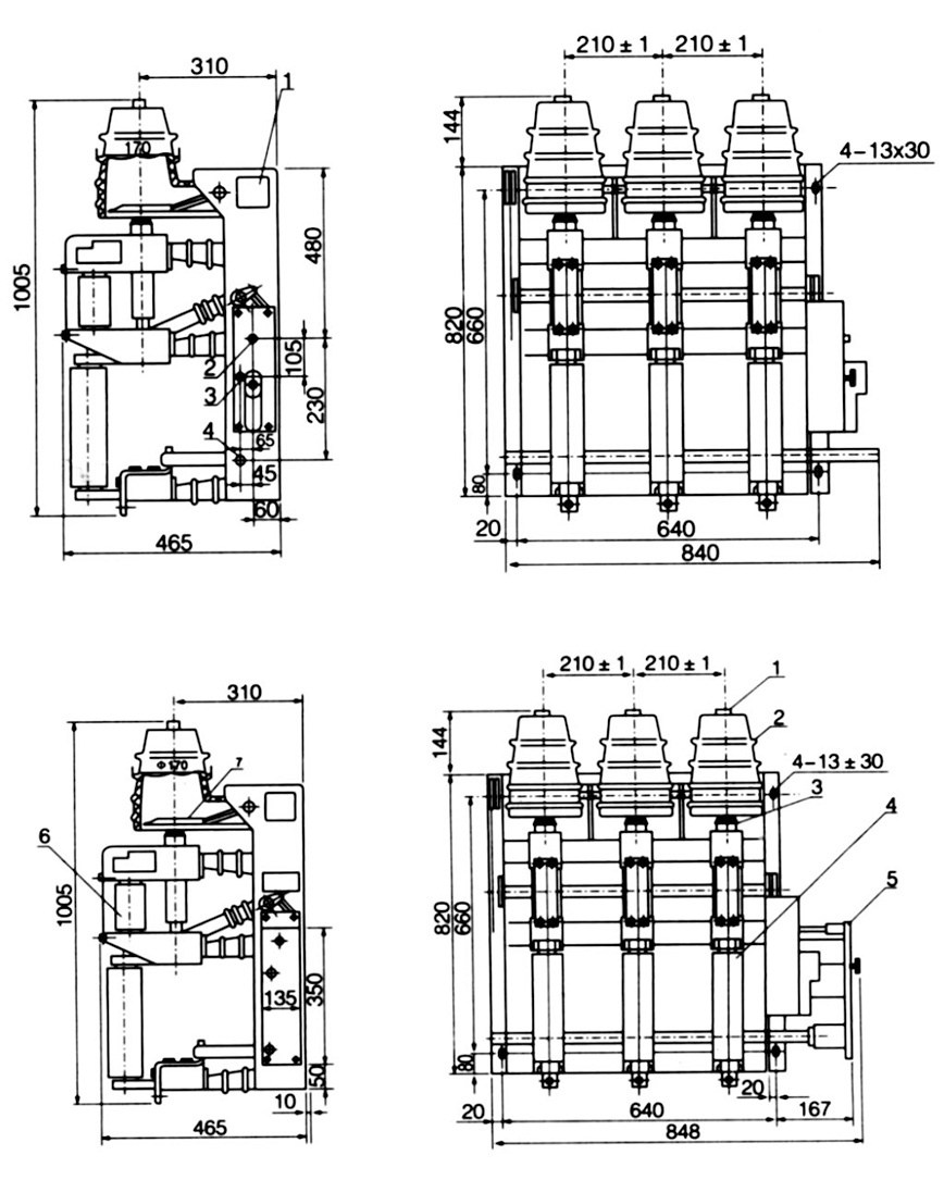 圖1負(fù)荷開(kāi)關(guān)和組合電器外形及安裝尺寸圖圖(不帶面板)       圖2負(fù)荷開(kāi)關(guān)和組合電器外形及安裝尺寸圖圖(帶面板)