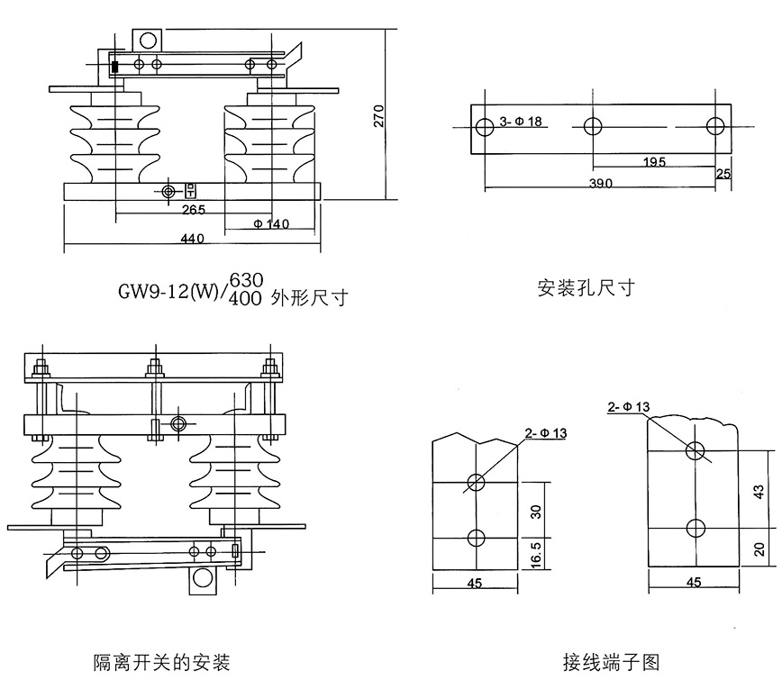 GW9型戶外高壓隔離開關(guān)為交流50Hz的戶外高壓電器設(shè)備,額定電壓等級有10kV,15kV,24kV供高壓線路在無負載情況下進行開合,以及對被檢修高壓母線、斷路器等電氣設(shè)備帶電的高壓線路進行電氣隔離之用,也可用于開、合小的電容或電感電流。