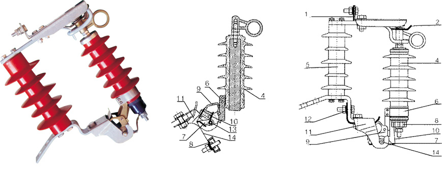 本跌落式避雷器出現(xiàn)異常發(fā)生故障時,利用工頻短路電流讓脫離器動作,使脫離器接地端自動脫開,避雷器元件翻落,退出運行防止事故進一步擴大,并易于維護人員及時發(fā)現(xiàn)進行維護和更換。其翻落原理類似熔斷器熔絲熔斷熔斷引起熔管翻落。我公司采用了目前國際最先