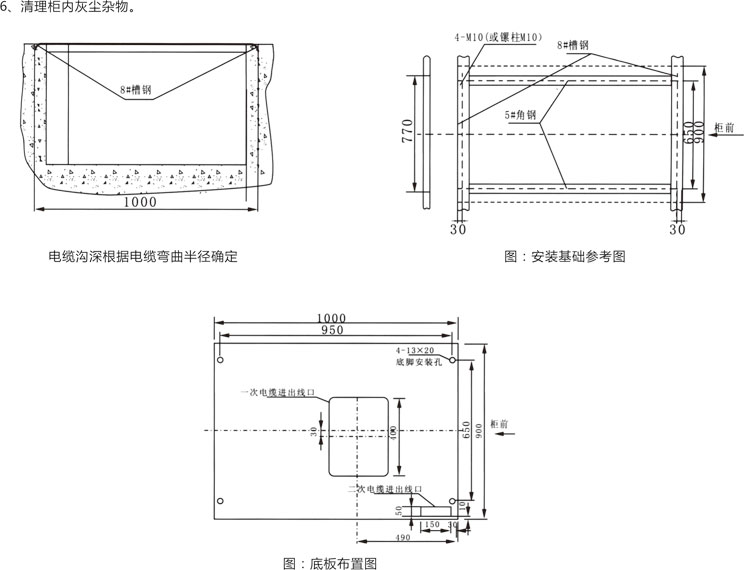 ◎ 將開關(guān)柜按順序放置于基礎(chǔ)上,調(diào)整好安裝的位置,然后用M12螺栓或者用點(diǎn)焊方法進(jìn)行固定死,柜與柜間與M8螺栓并緊。
